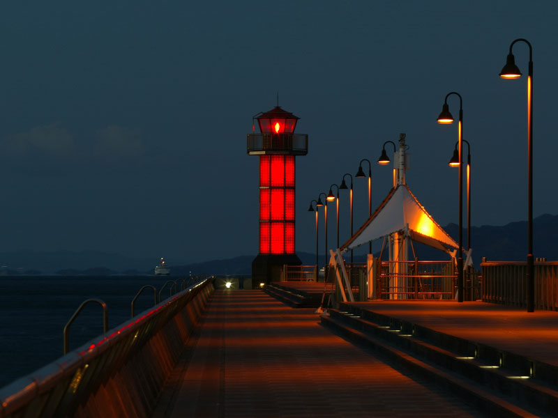 灯台全体が発光しているので、夕暮れ時から夜にかけてロマンチックな雰囲気が楽しめます。