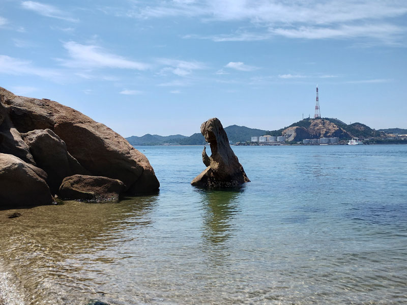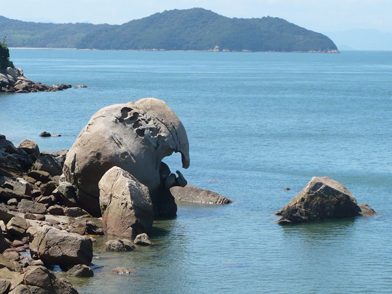 西岸は海水浴場となっており、その南端に国指定の天然記念物「象岩(ぞういわ)」があります。