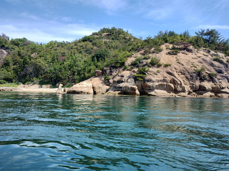 島の中心に県境があり、北側は岡山県玉野市、南側は香川県高松市に位置する珍しい無人島。